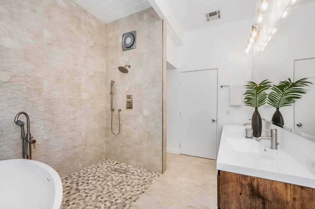 Shower installations, tile work, vanities, lighting, and complete bathroom transformations.